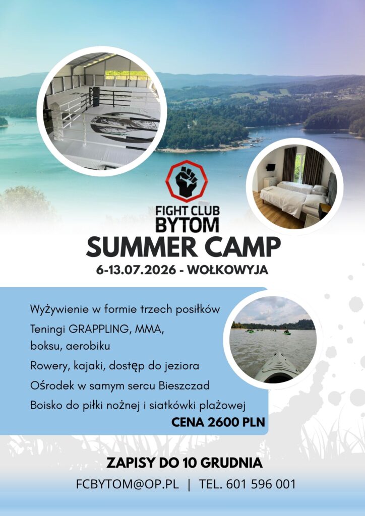 Uwaga, od jutra do 10 grudnia można zapisywać się na letni obóz FC Bytom. Zapisy u trenera Grzegorza wraz z zadatkiem 200zł. Obóz będzie miał miejsce w Ośrodku Mistrzostwa Sportowego „Bieszczadia” położonym nad Soliną w Wołkowyi. Cena 2600zł obejmuje: